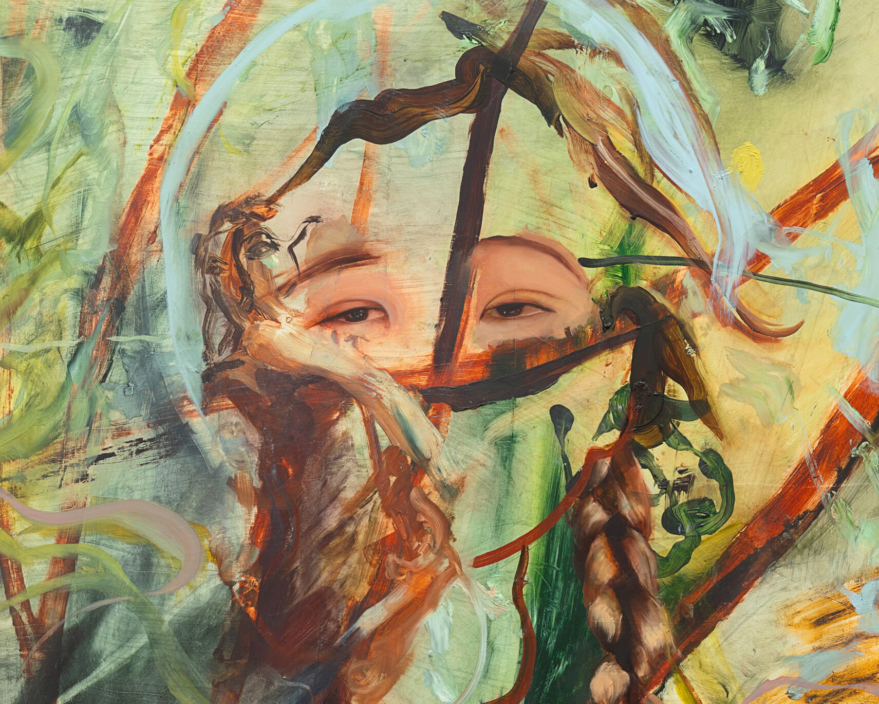 Aineki Traverso employs the rhetoric of painting to articulate a personal narrative rooted in poetics and impossibility. Aineki's filmmaking background provides a conceptual and material foundation for a phenomenological approach to painting, in which site-specific installations serve as allusions to the gaze, the lens, architectural space, and situational aesthetics. The paintings’ iconographies are derived from a personal archive that includes inherited and found materials, the foundation of which relies on thousands of family photos that span generations and homelands and contain multitudes of histories, memories, and fantasies.