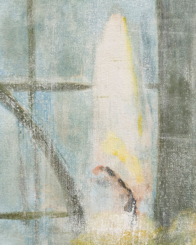 Ariel Dill paints abstractions that include visual occlusions, hiccups and whorls. Bleary shapes spread across her canvases, with moments of movement or focus implied as if her compositions could be entered psychically. Dill’s intuitive process leads with color and pulls from a vocabulary of forms the artist develops during automatic drawing sessions. The artist's paintings invite the viewer to explore her anthropomorphized imagery and revel in their slippery nature.