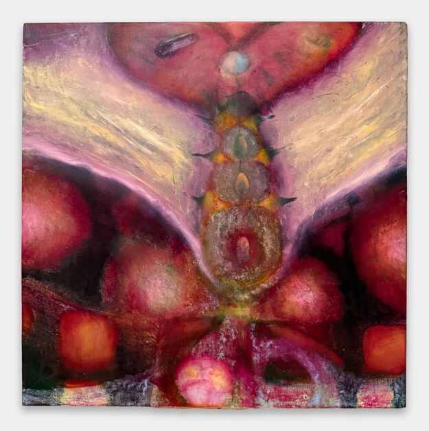 A self-taught artist from a long lineage of woodworkers, textile designers, and metalsmiths, Beck Lowry makes elaborate wall-hung sculptures carved from assemblages of laminated plywood, intricately ornamented in mixed media. Largely biomorphic in form, these abstract artworks draw their language from both the natural world (mimicking the aposematic markings and structural coloration of flora and fauna) and the rich inheritance of decorative patterning made by artisans for millennia. Lowry’s work is born from a need to build through physical ritual and locate themselves within a lineage of artisanal laborers. By combining these impulses, methods, and materials with contemporary ego-centered conceptions of art, Lowry's work explores the many uses of art objects, from protection to storing memories or history.