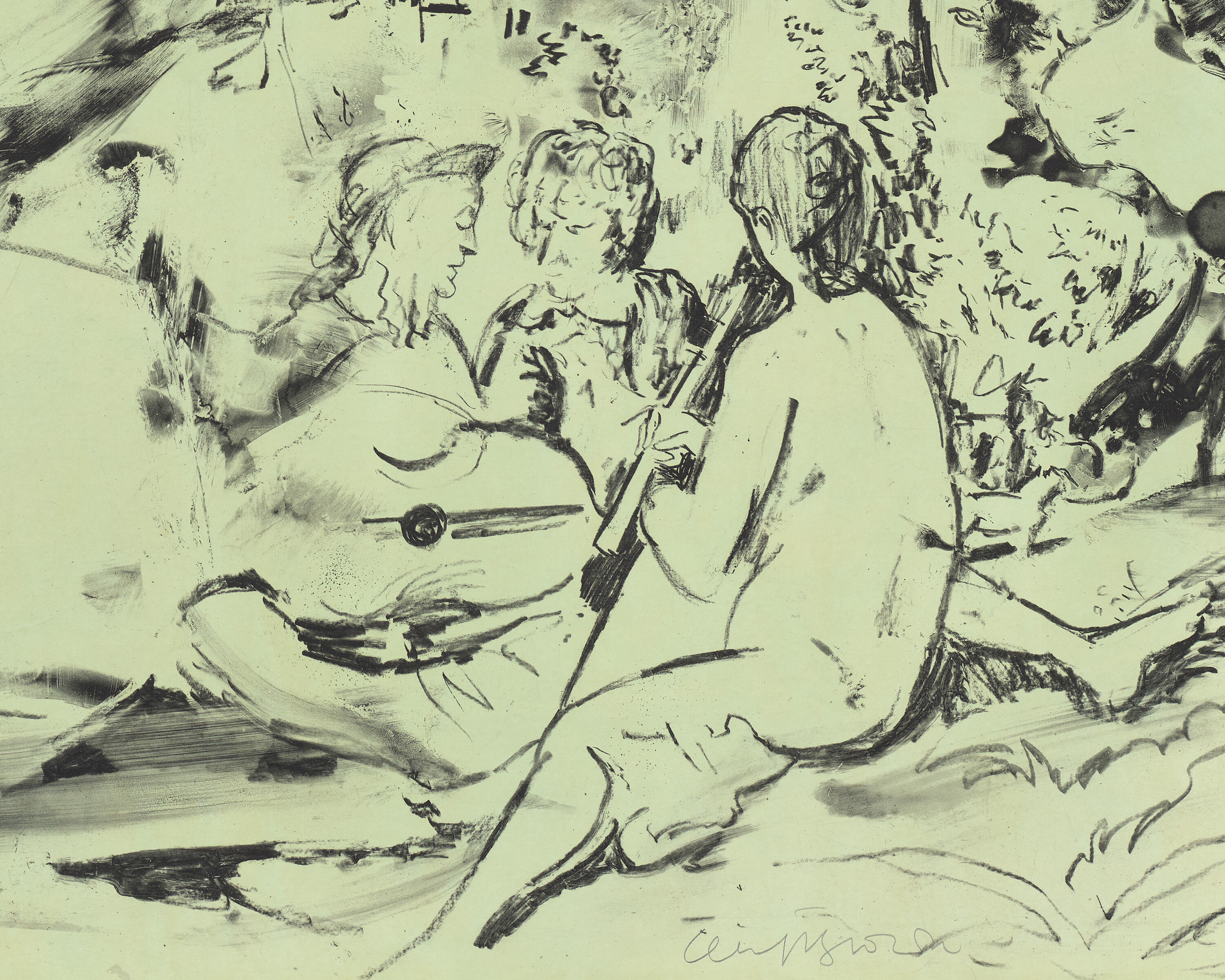 Cecily Brown (born 1969) is a London born, New York based artist, best known for her large-scale paintings that blend abstraction and figuration. Her richly painted images often use the work of old and modern masters such as Rubens and Degas as a starting point to explore themes of sexuality and desire. Brown’s bold, gestural brushstrokes and command of painting have drawn parallels to abstract expressionists like de Kooning, but her singular approach to abstraction, imbued with supple figures and eroticism, removes her work from the masculine undertones that have been traditionally associated with the movement.
