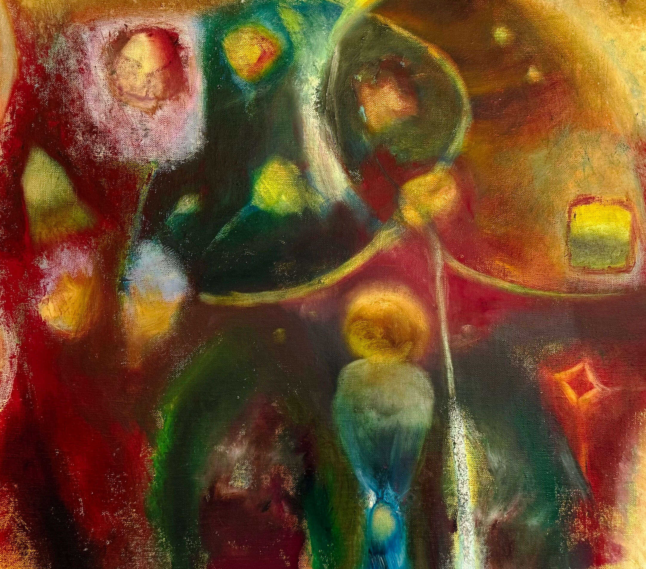 Ballantyne’s paintings emerge through an intuitive, layered process that privileges sensation over planning. Rich color, symbolic forms, and accumulated marks create surfaces where memory and perception intertwine. Each work becomes a quiet record of how past experiences continue to shape emotional and spiritual awareness in the present.