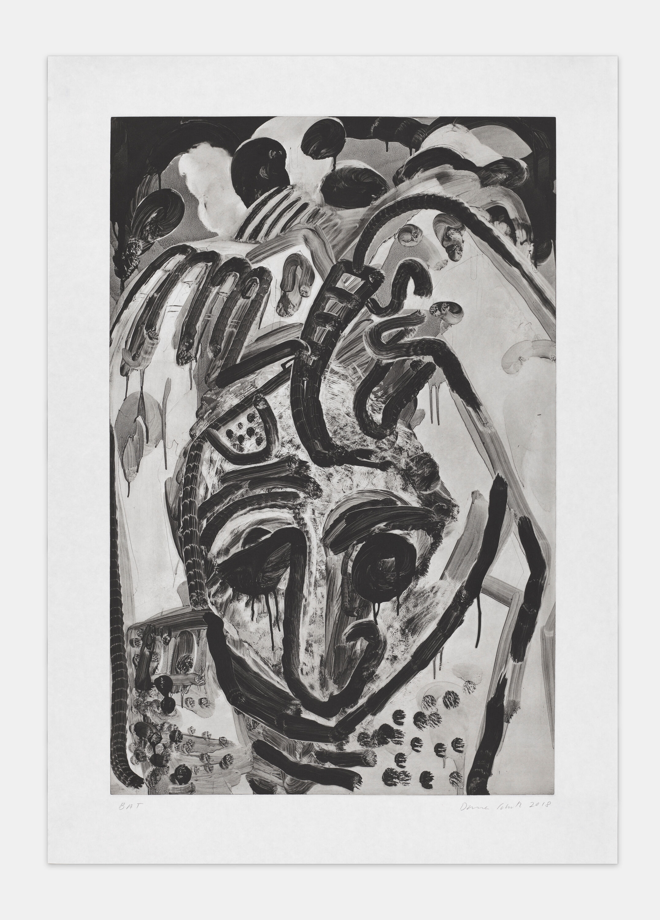 Dana Schutz has been making monotypes and etchings at Two Palms since 2012. The artist's etching series titled Strangers was recently acquired by the Cleveland Museum of Art in Ohio.