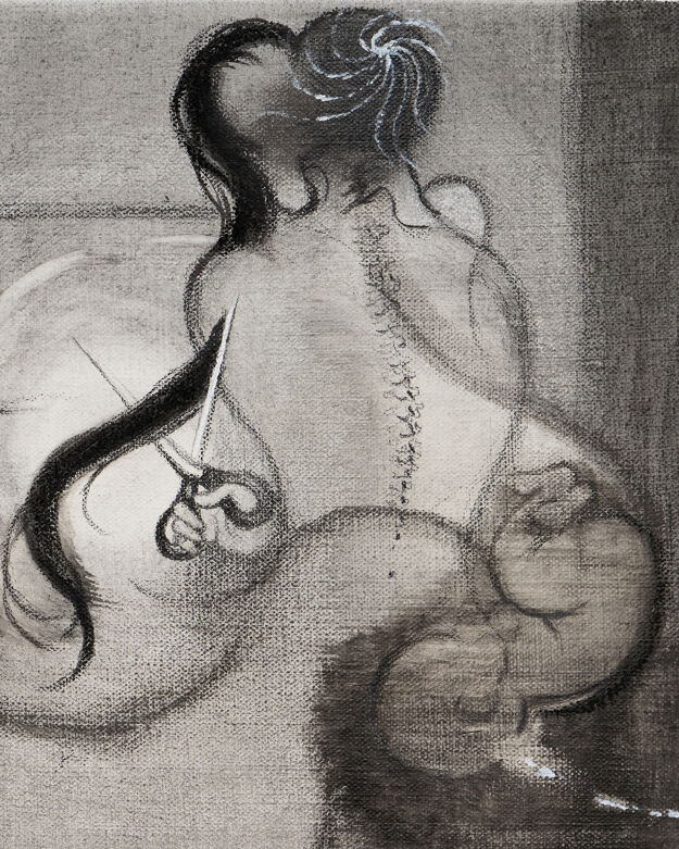 In this diptych, Darren Cortez juxtaposes the familiar presence of dining utensils with the unseen and hallucinatory, offering a meditation on how inner and outer realities coexist. The work explores the corporeal functions of daily life intertwined with human expression, emotion, and quiet contemplation embedded in the mundane.