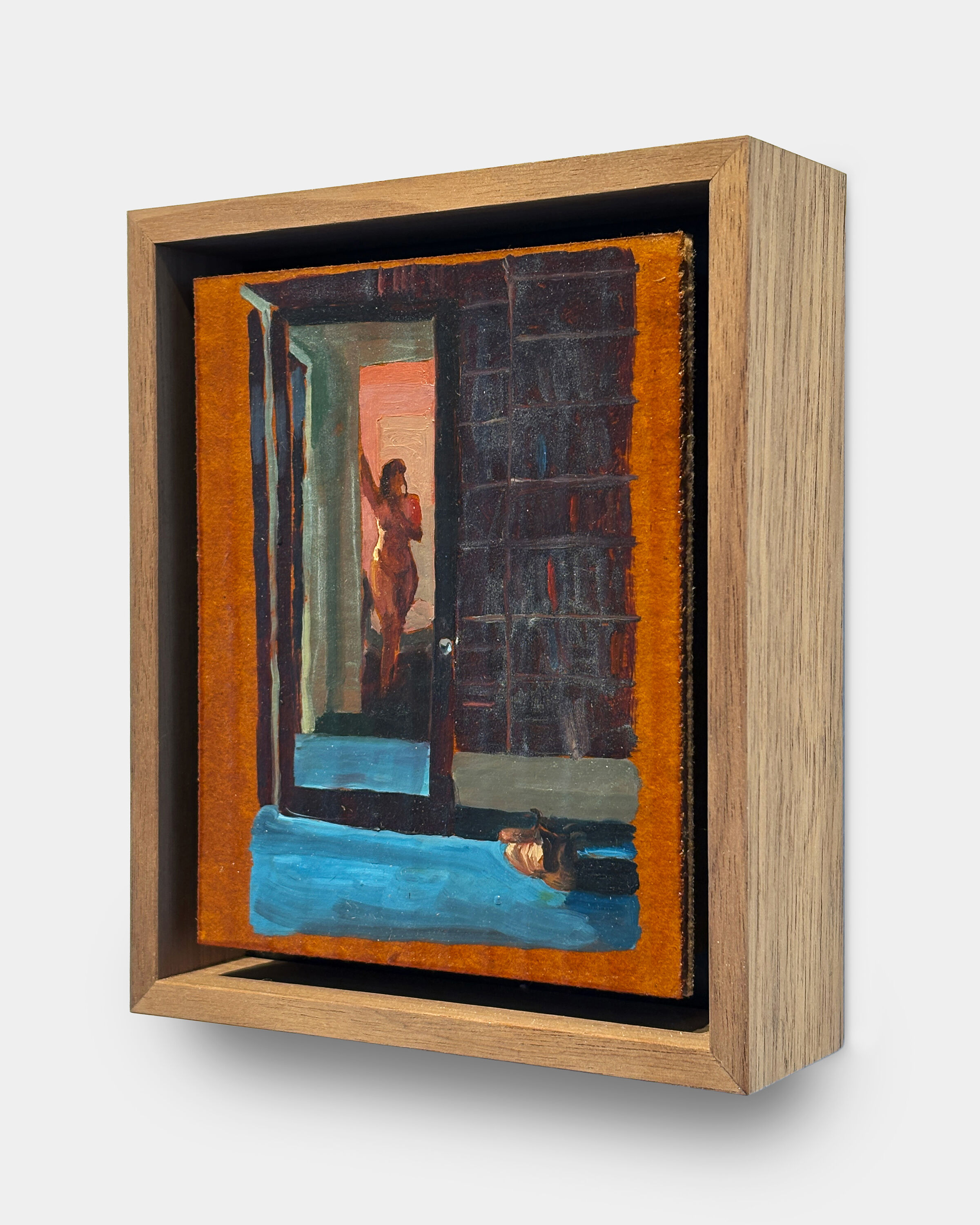 These miniature oil paintings by Drea Cofield are from her ongoing "selfie" project. Each painting is based on a photograph sent to her—originally an erotic nude snapped to give to a lover or keep for oneself. Through her nuanced portrayals, Cofield examines the interplay between personal identity and the gaze of the viewer, inviting reflection on the boundaries of privacy and the act of witnessing.