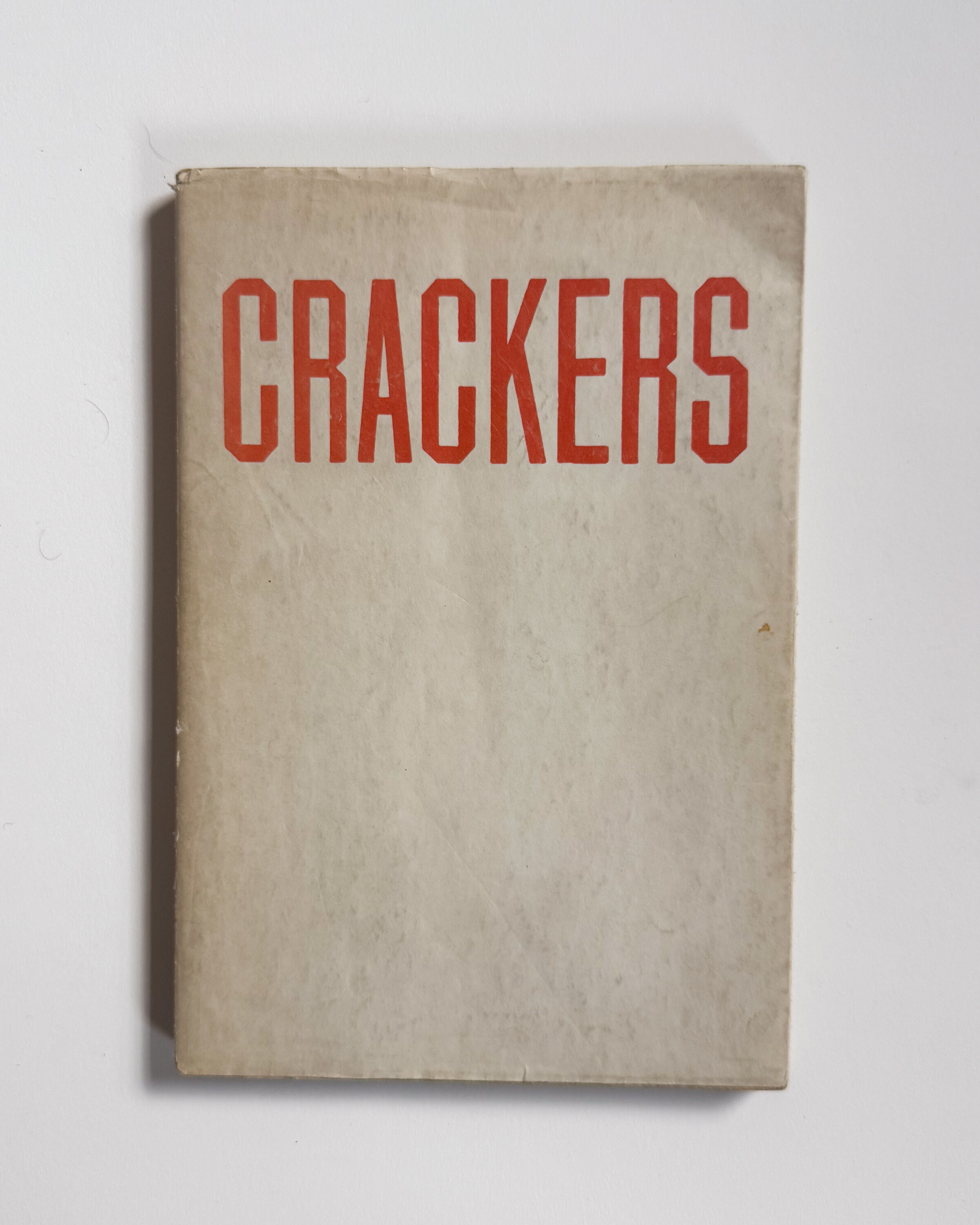 A classic, from Ruscha, Crackers is filled with photos taken by Ruscha based on the text by Mason Williams’, 'How to Derive the Maximum Enjoyment from Crackers' featuring Larry Bell, Leon Bing, Rudi Gernreich, and Tommy Smothers. Printed in an edition of 5,000. Some coloring on waxed cover and rear. Otherwise, great condition. 240 pages.