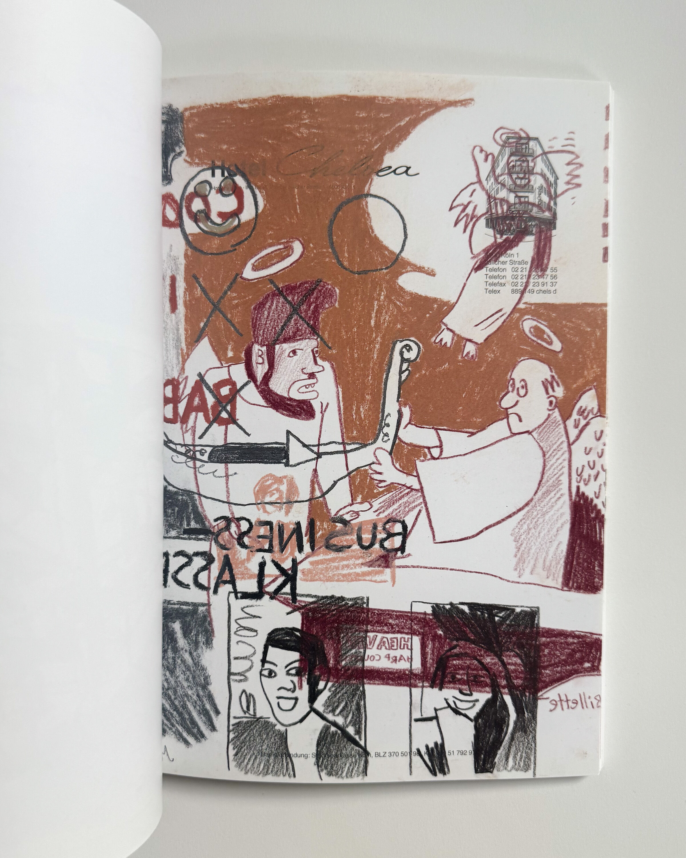 Published by Pace McGill and Galerie Gisela Capitain, Heavy Madel is a collection of color and black and white reproductions of some of Kippenberger’s Hotel Drawings, all painted by his assistant, to his specifications. They all appear on pages from a Hotel Chelsea notepad. A bit cheeky, and not quite sober, as most Kippenberger tends to be. An essay by Stuart Morgan is laid between the center pages. Excellent condition.