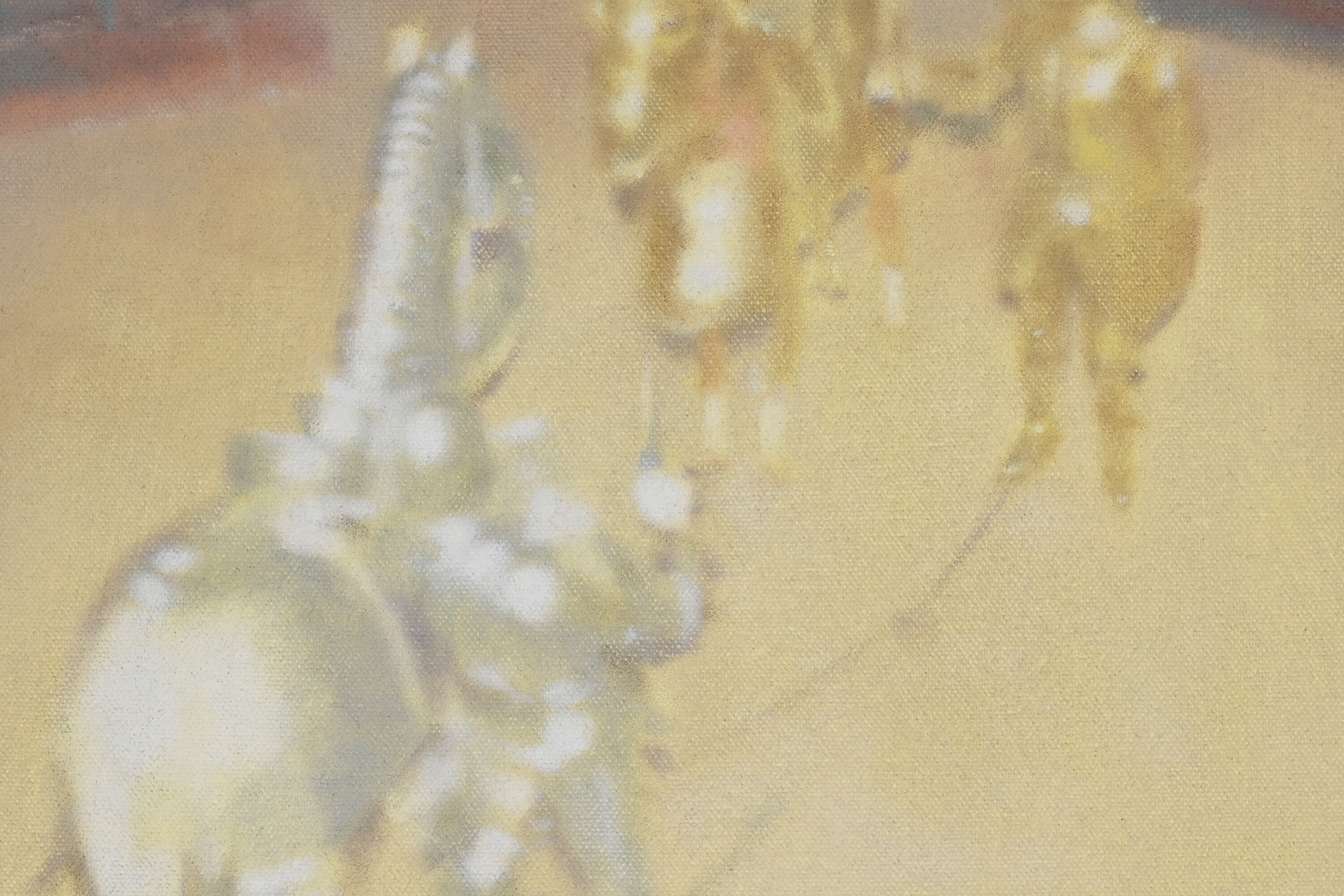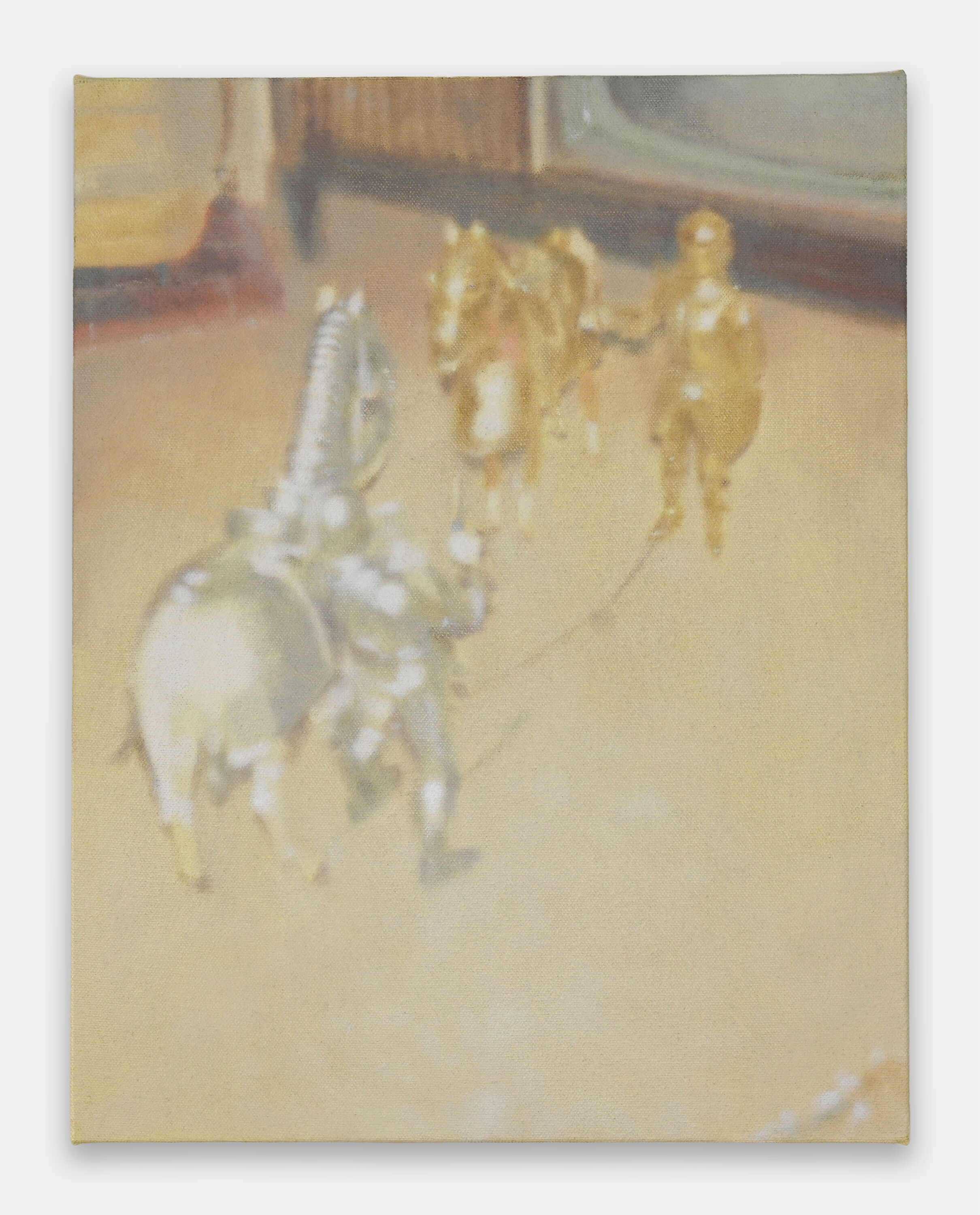 Drawing on influences including the occult, her midwestern upbringing, and the hidden and overt symbolism and rituals inherent in our everyday lives, Emma Beatrez’s work encompasses sculpture, painting, video and installation. In her oil paintings, Beatrez harnesses magic from the commonplace with a keen eye for the subtleties of gaze. Her recent paintings explore core psychoanalytic notions of the symbolic and the real as well as the emergence of new meanings through distortion and recontextualization of established iconography. Images flicker between personal and public open source, taking shape in a constant state of flux. Like a game of telephone, everything comes full circle in the end, altered through the degradation of transference.