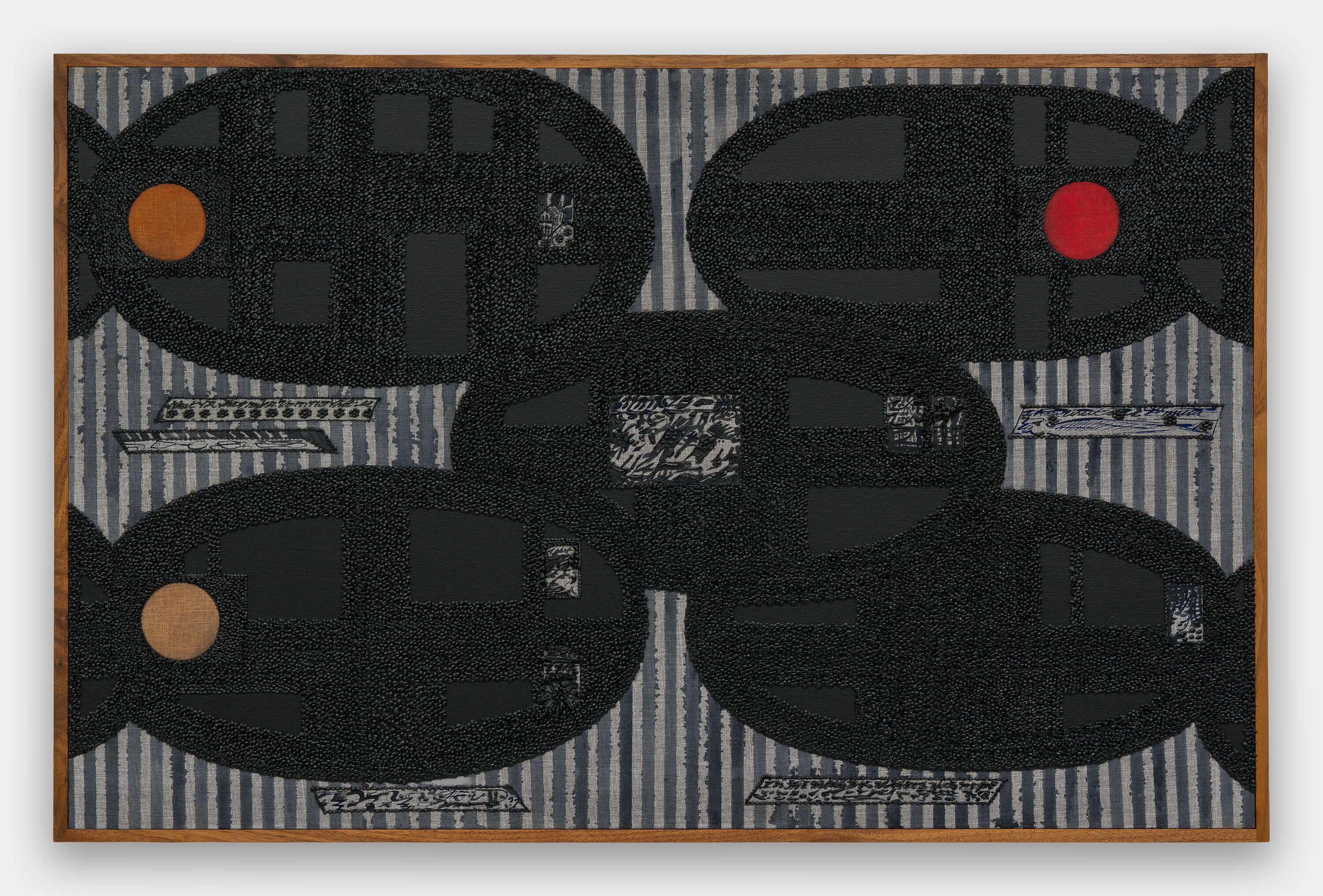 Oil, acrylic, upholstery, walnut artist frame