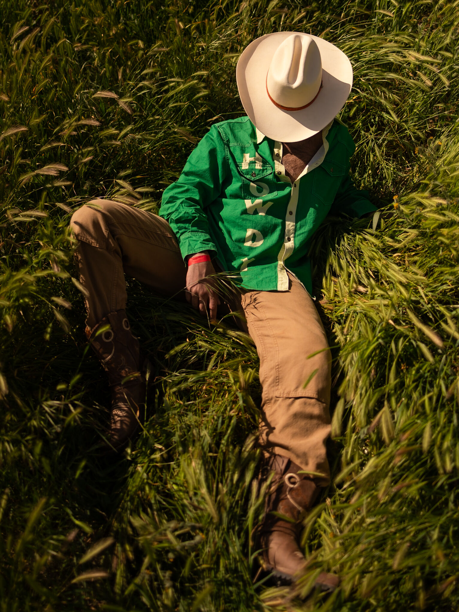 Brandon and I met at Santa Fe, New Mexico rodeo in 2024; he was there to also photograph the rodeo and I love to help step in to meet and introduce a new photographer at the rodeos (because I wish I had that when I started in early 2023). Since then, Brandon and I have ran into each other at a handful of rodeos, including the Palm Springs rodeo in 2025. It was my first time at the Palm Springs rodeo, which ironically was also the year I took major attention off photographing the rodeo so I could actually compete, however I still make sure to bring my cameras. During some downtime during our second rodeo day there, we were enjoying doing photos of others in this beautiful, tall grass. When we finished, he asked if I would take some photos of him because he had this idea in his head. This image is a reflection of his idea.