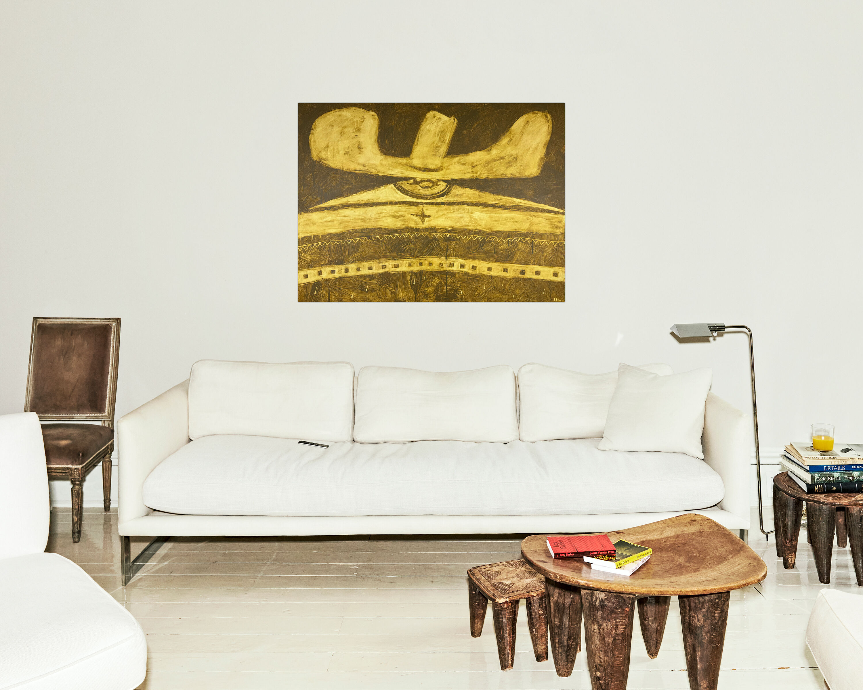 Lumen describes his process as an intuitive buildup followed by decisive refinement: a dense layering of paint that is then pared back with intention. Through this push and pull—construction and reduction—he coaxes riders, hats, and silhouettes from the surface. The result feels both discovered and declared.