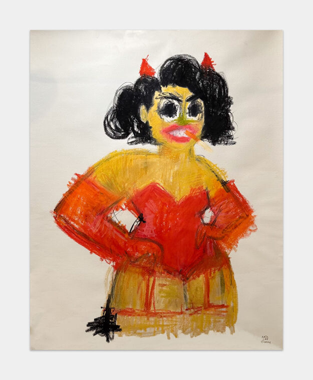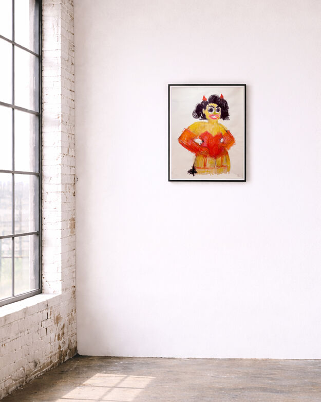 Hannah Lupton Reinhard’s work embraces the fluid, interwoven nature of identity, echoing philosopher Judith Butler’s view that cohabitation—living among and alongside others—is central to Jewishness itself. The paintings, which depict Jewish and non-Jewish women in the artist’s life, reject the notion of insularity in favor of a more expansive belonging that promotes coexistence—not despite difference, but because of it. The figures in Lupton Reinhard’s paintings often embark on a physical journey—much like the Jewish people crossing the desert in the story of Exodus—embodying Lupton Reinhard’s belief in adapting Judaism to daily life. Lupton Reinhard uses a unique process to create swirling microcosms of skin and texture, with figures adorned in stylized hair and opulent textiles that shimmer beneath the weight of Swarovski crystals. These embellishments serve as decoration and distortion, armoring her figures against the world.
