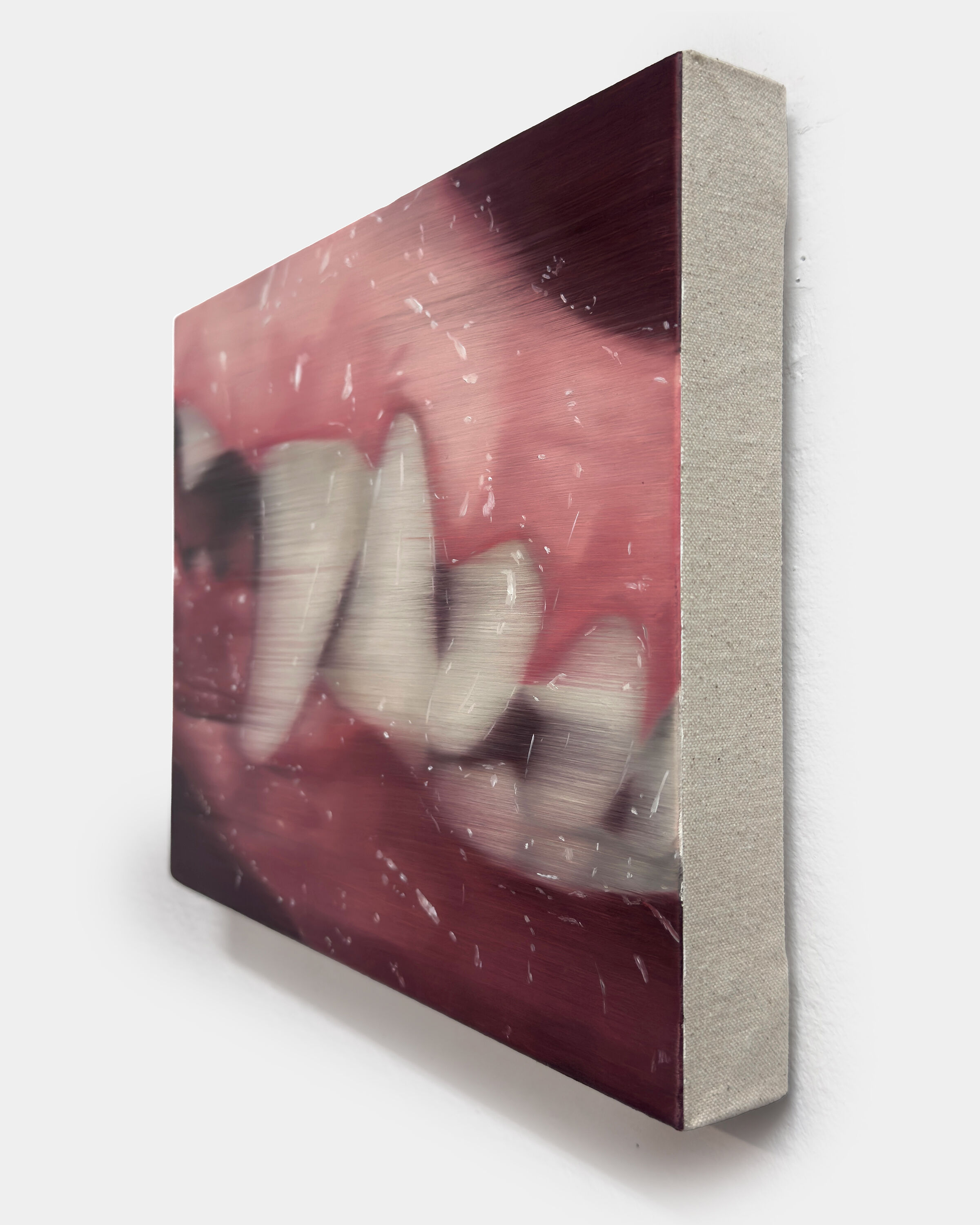 Jen DeLuna’s work explores the moments of vulnerability confessed through figures and animals. She uses her robust collection of found photographs from thrift stores, family photo albums, and eBay as the basis for her paintings. DeLuna depicts classic representations of domesticity, beauty, love, and femininity as memories, some wistfully fading and others stuck in a glossy state of film or porcelain. Her paintings distill memory into nostalgia: perilous beauties, fearful beasts, and intimate moments.
