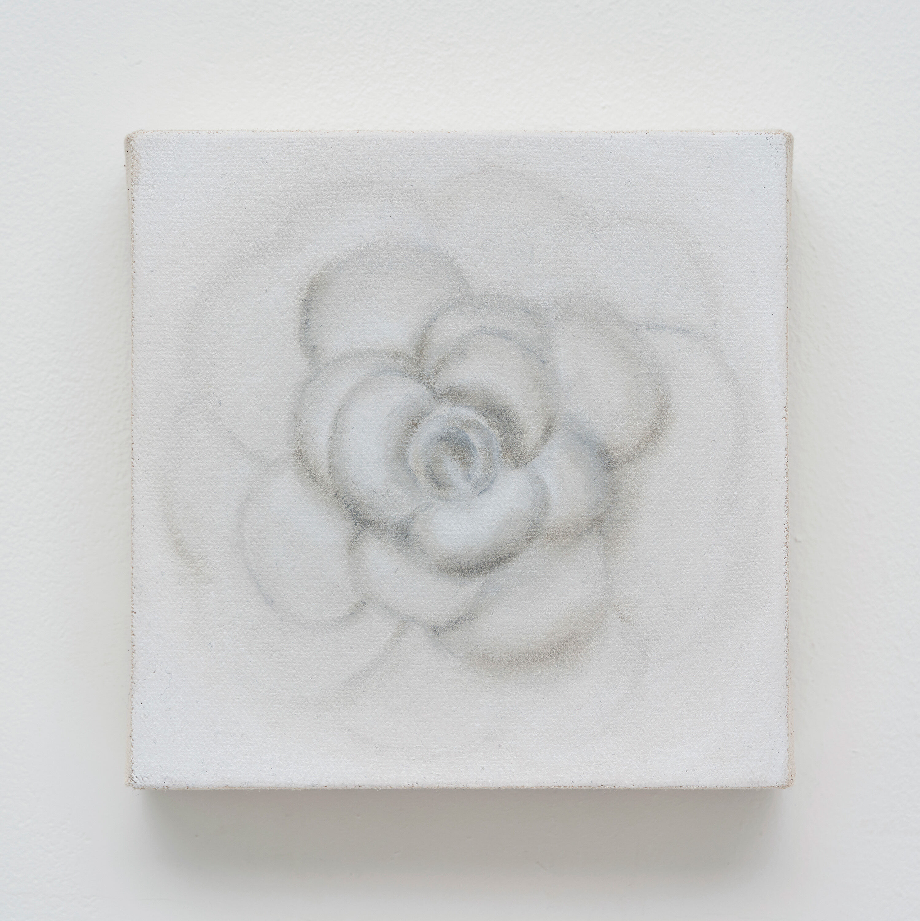 Bliss is one of a two-part series of monochromatic, small-scale paintings. The floral motifs in these works reference cosmetic and wellness products- specifically the paper camelias used on Chanel packaging- a major cultural export of South Korea. Through this series, the artist explores the connecting lines between commerce, infrastructure, and the ever narrowing divide between the East and the West.