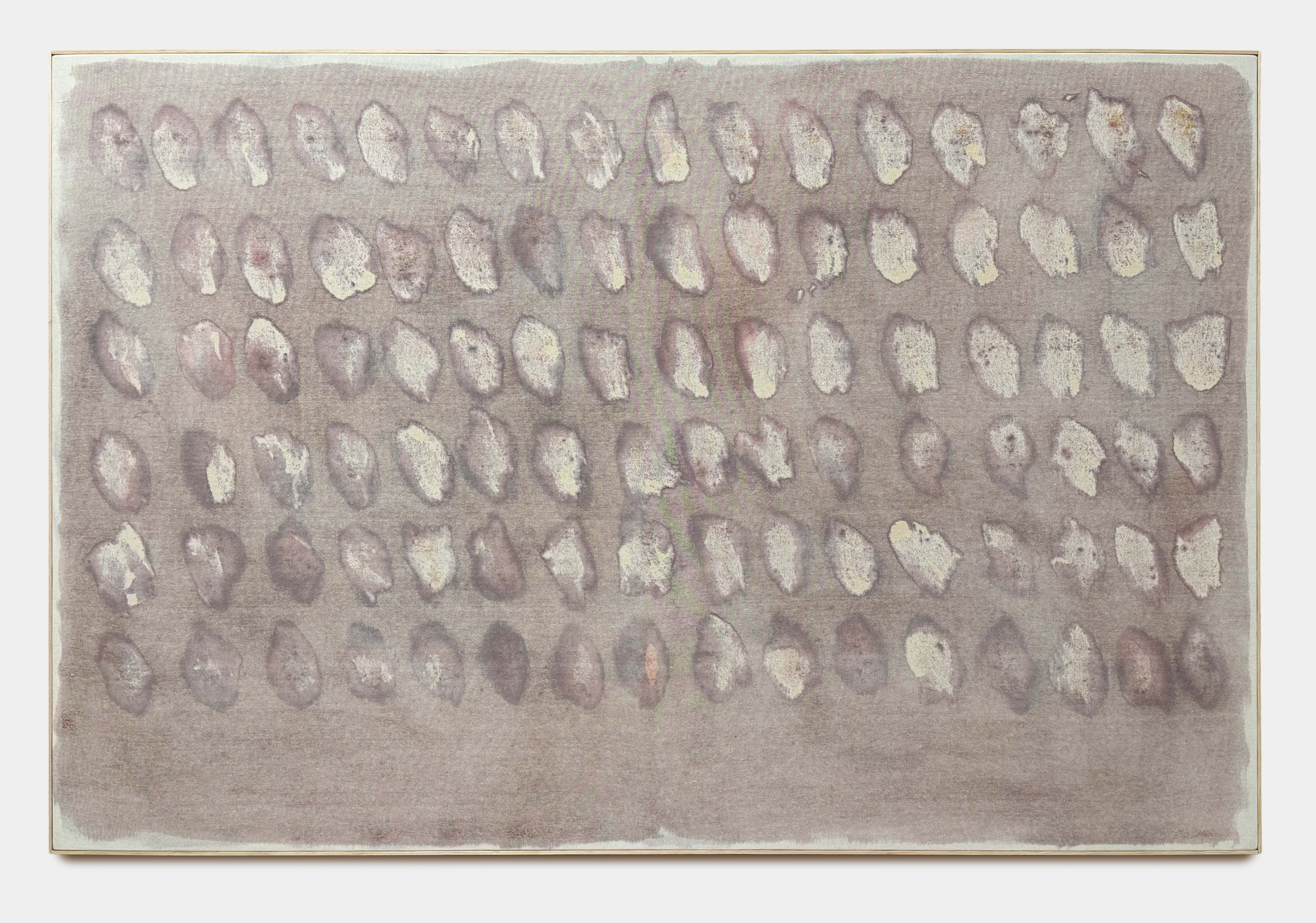 Part of Henry Joe Baker’s Inversion series, these works are made by applying mediums from the interior of the canvas rather than its surface. Fabric dye and acrylic are slowly absorbed through the support, with the image emerging gradually as the material dries. Nothing is applied to the front; instead, the surface becomes a record of internal movement and seepage. The result is a quiet reversal of traditional painting, where visibility is determined by what passes through rather than what is placed on top.