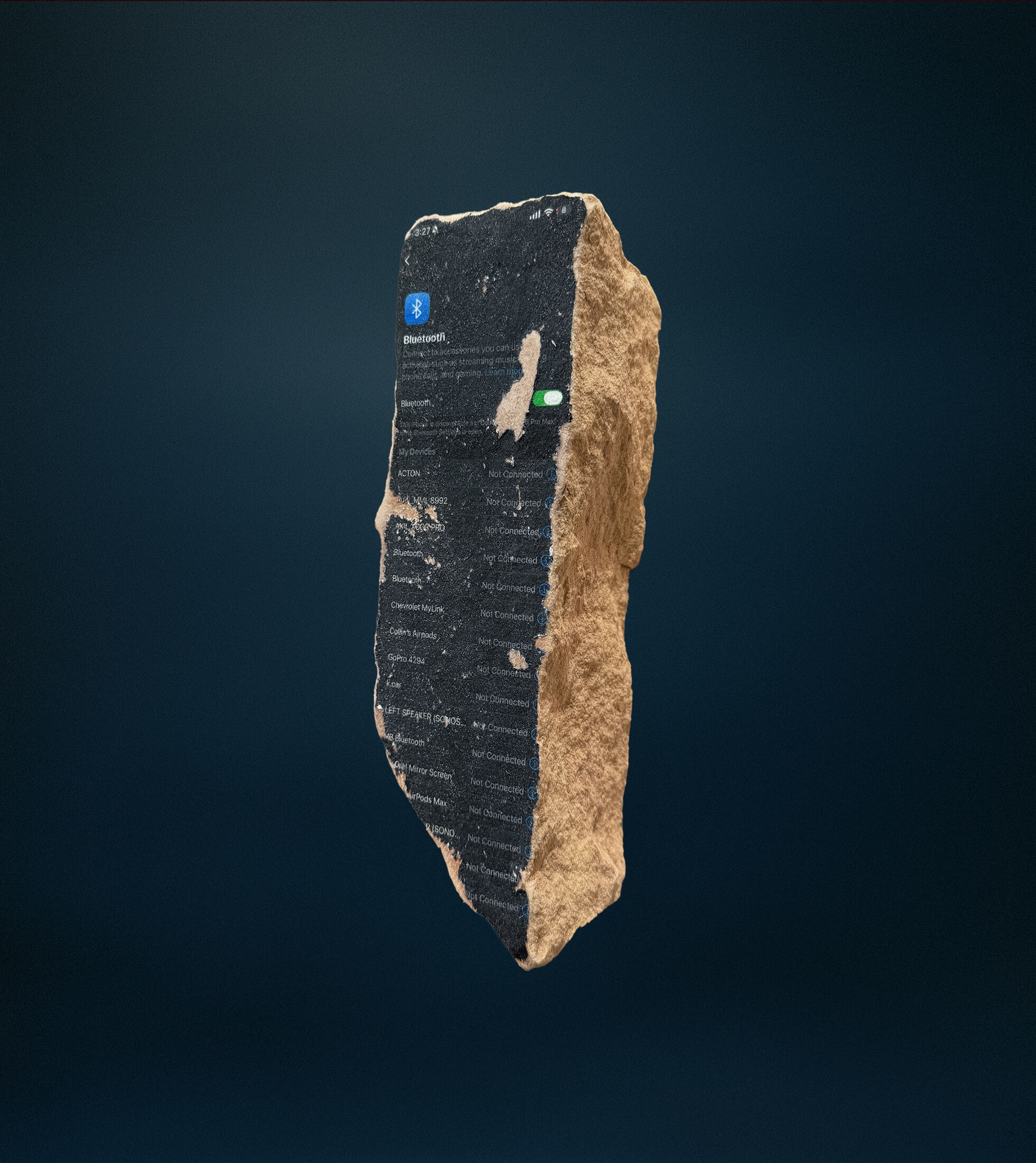 Kleinian’s work operates at the intersection of the digital age and deep time, aiming to recontextualize our relationship with technology and Artificial Intelligence. In a culture of accelerating obsolescence—where a breakthrough AI model is superseded in days and a “cutting-edge” device becomes outdated within months—the present moment is almost instantly buried. The artist counters this ephemerality through a form of speculative archaeology. By “calcifying” pixels into geological forms, digital objects are stripped of their function and granted a sense of permanence. The work invites reflection on what a future civilization might understand about our complex and anxious culture when sifting through the dirt and rubble of the Age of AI thousands of years from now.