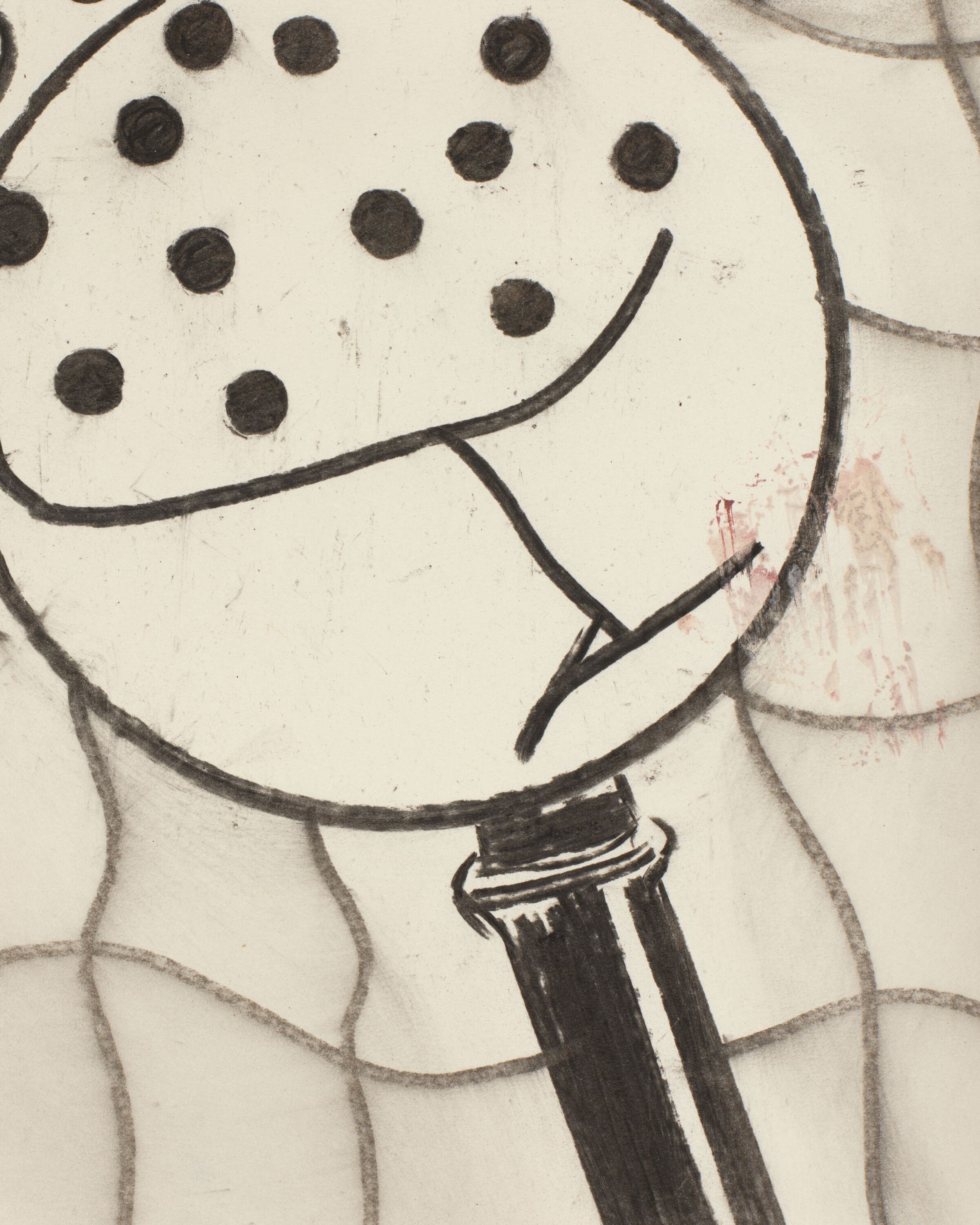 There is nothing to hide behind with drawing, it is a thinking language, transparent and immediate, unburdened by material pressures. Breitenbach's drawings linger on the precipice of transformation, like a cartoon strip without resolve, we never catch exactly what's happened. These crisp and elusive compositions draw from a large archive of negligible illustrations of an era far gone, whose essence grapples with logic and humor. Recognizable symbols sail past viewers, faces spontaneously appear from the smog of charcoal, two lovers dance, visible only from below the ankles; we stumble through scenes via a perverse pantomiming, we look as much as we are looked at, hopefully eliciting a brief moment of sympathetic wonderment.