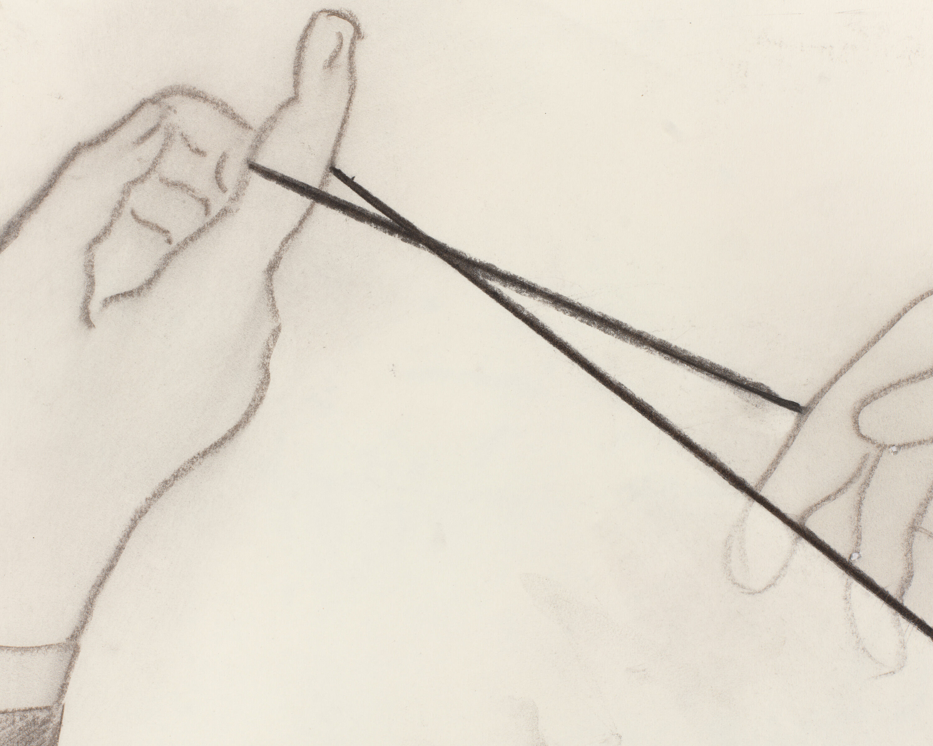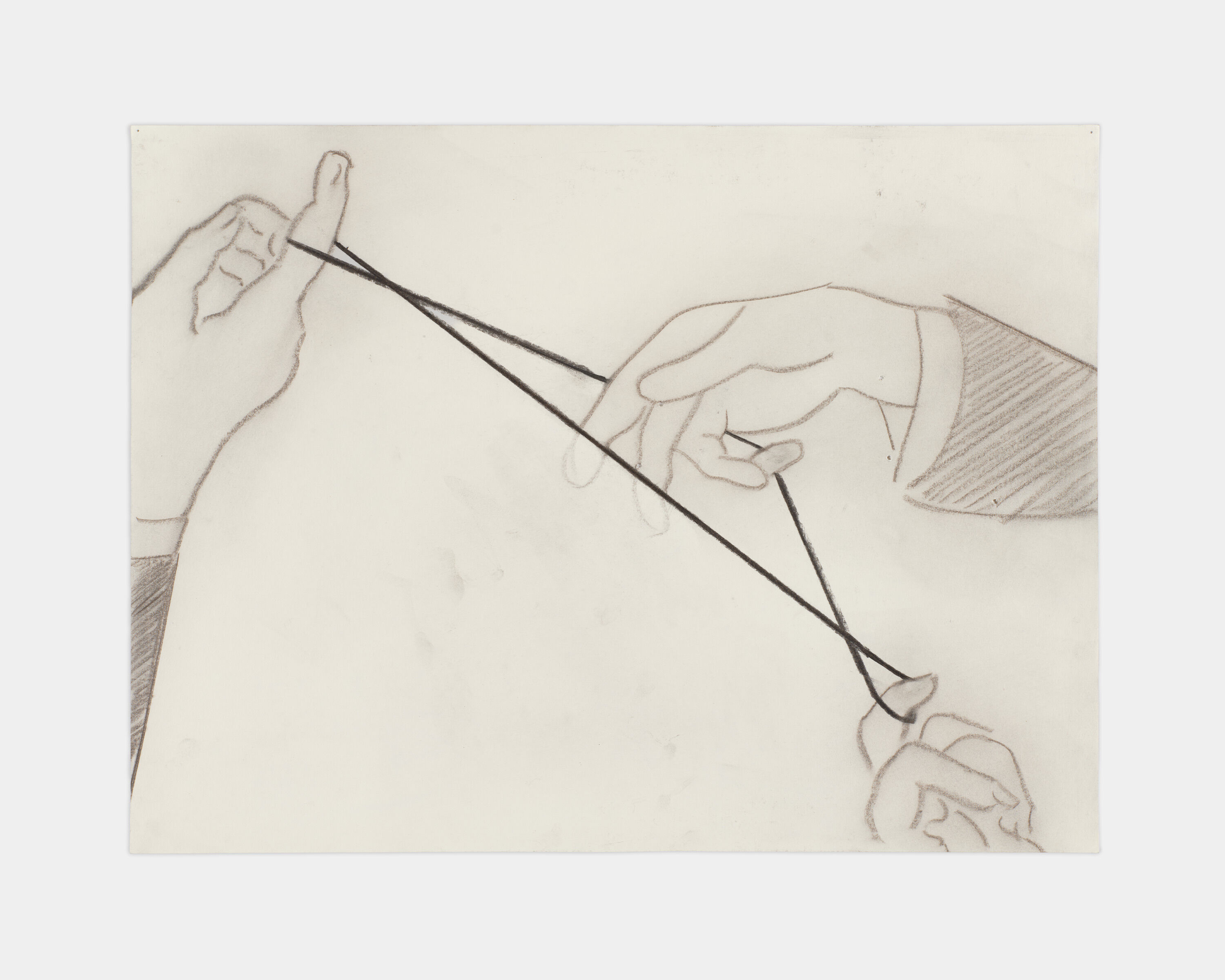 There is nothing to hide behind with drawing, it is a thinking language, transparent and immediate, unburdened by material pressures. Breitenbach's drawings linger on the precipice of transformation, like a cartoon strip without resolve, we never catch exactly what's happened. These crisp and elusive compositions draw from a large archive of negligible illustrations of an era far gone, whose essence grapples with logic and humor. Recognizable symbols sail past viewers, faces spontaneously appear from the smog of charcoal, two lovers dance, visible only from below the ankles; we stumble through scenes via a perverse pantomiming, we look as much as we are looked at, hopefully eliciting a brief moment of sympathetic wonderment.