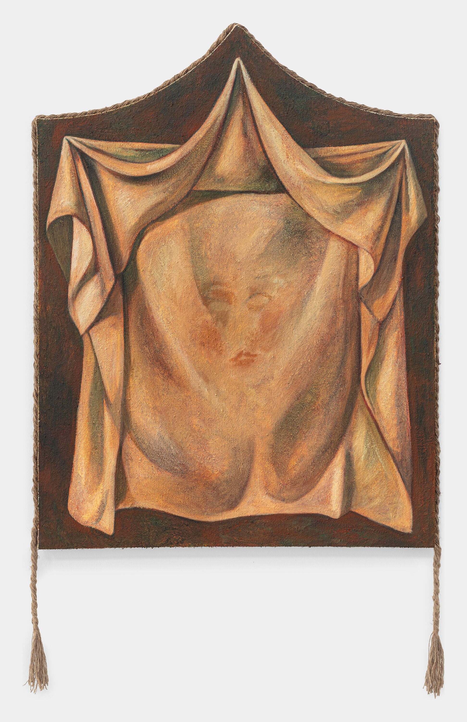 Interested in our human need for meaning, Lily Rose Fine examines what devotion looks like in a modern context, through potent symbolism, memorabilia, and art making as an attempt at an afterlife. Within a collected language of iconography inspired by relics, antique objects, cinema, theatre, and art history, she casts herself and those close to her as recurring actors that embody narratives of intimacy, obsession, preservation, and privacy. Fine often uses antiques and found objects as extensions of her paintings. Thinking about everyday personal belongings as relics and devotional objects, she grasps at an elusive feeling within everything she makes; one that captures the eery mystery of encountering the public future of private, personal, anonymous ephemera. Depicting her own ineffable personal experiences veiled with ambiguity, she invites a collaboration with viewers’ inquiries, projections and instinctive storytelling, often becoming a mirror for self-reflection.
