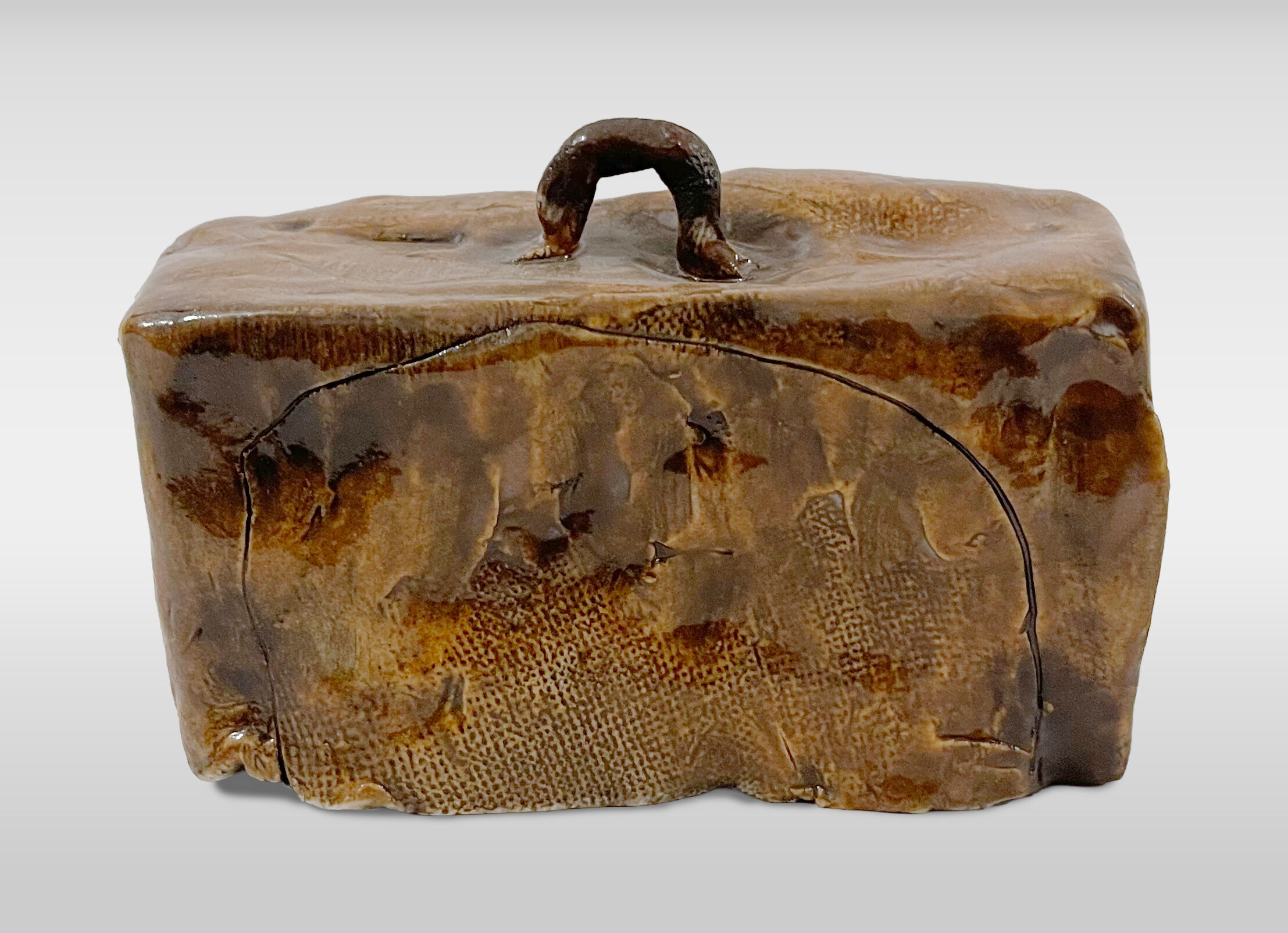 Maya Strauss often incorporates found handwritten text into her work to create a sense of poetic humor. The phrase “unaccompanied baggage,” scrawled on a forlorn suitcase that appears almost childlike in its construction, is both playful and quietly melancholic. Strauss approaches objects as more than merely anthropomorphic forms; she imagines them as sentient vessels that carry the weight and memory of their histories. This sensibility informs her practice of collecting discarded items and transforming them into assemblages or carefully rendered clay replicas, acts that preserve their presence and resist their erasure or neglect.