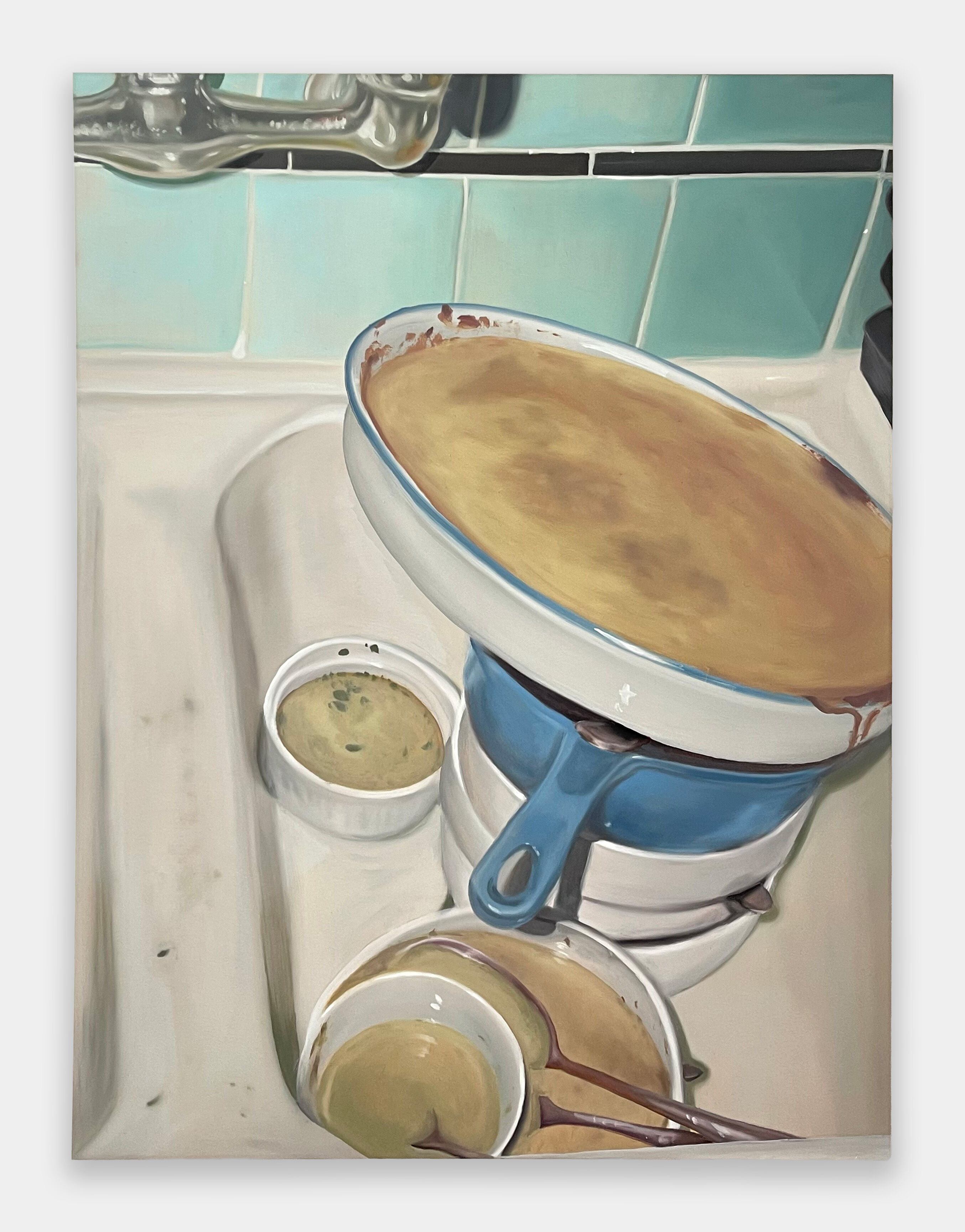 While the subject matter of Owen Wills’ paintings is restless and constantly shifting, they consistently reflect the artist’s core priorities. A quietness runs through much of the work, balancing simple, observed moments with an awareness of the effort and struggle embedded in everyday life. The paintings are smooth and softly rendered, using blending techniques informed by Wills’ time working as a muralist and sign painter in New York City. Drawing from personal photography, physical collage, and archival film stills, the work aims to convey a sense of personal spirituality, finding subtle magic in daily life and elevating its most mundane, humble details.