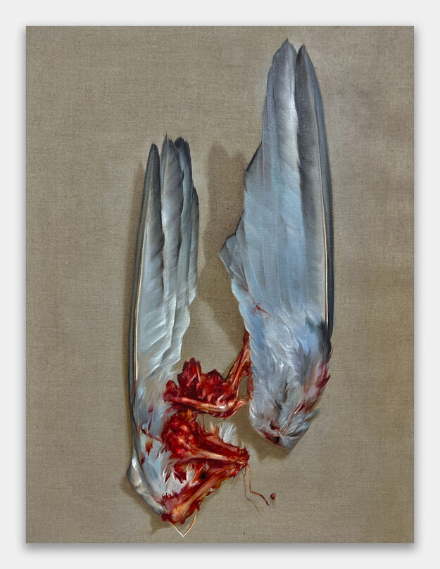 Klein employs classic surrealist tactics in paintings that address the fuzzy edges of memory. The artist's work depicts scenes that resist a single narrative interpretation. Klein's compositions develop a general feeling of tension, featuring central figures that are just out of reach—as if partially obscured behind a layer of frosted glass. The artist's use of both loose painterly brushwork and tightly rendered sections adds an immediacy to the unfolding situations in her work. The results are scenes that allude to moments lodged in our subconscious, despite having lasted for only a split second in reality. In Klein's paintings, Sphinx-like creatures send subliminal messages, while mournful dogs and horses lie wistfully or in the throes of panic. The artist's work pushes viewers just past their comfort zone, exploring when events spin out of control.