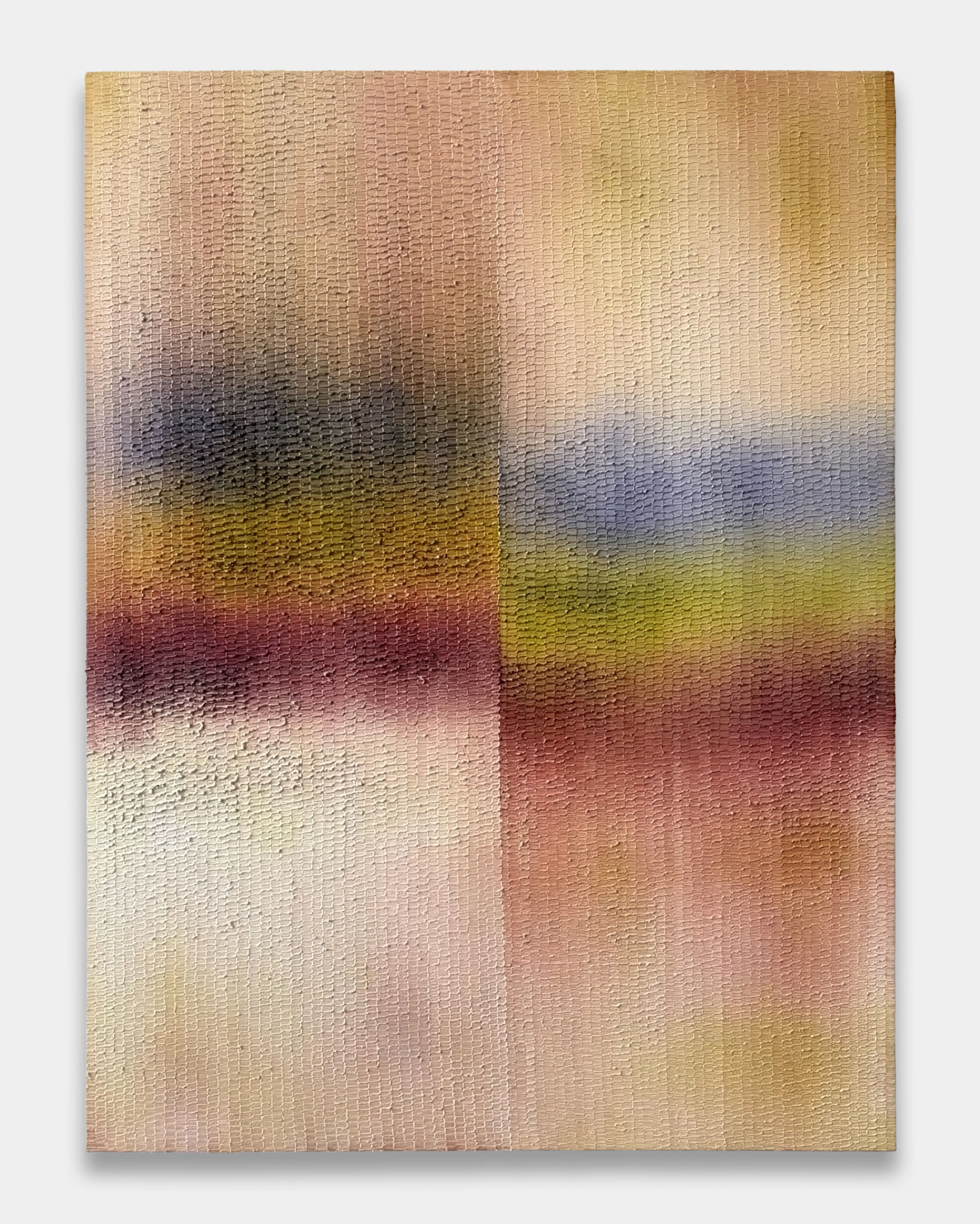 Richard Tinkler's paintings and drawings are both instinctual and labor intensive. Built up through intricate layering, the work manages to feel rigidly structured and hallucinatory at the same time. Tinkler starts with geometric grids, working from a consistent vocabulary of shapes, colors, and application methods. Each painting builds on the last, extending an ongoing visual language from one work to the next. Often completed in a single day, the pieces rely on intuition over planning—wet layers piled onto still-wet layers until a woven structure emerges, with geometric shapes that seem to float, drift, and dissolve. The results resemble psychedelic tapestries or otherworldly environments, where paint functions as both a physical material and something more charged.