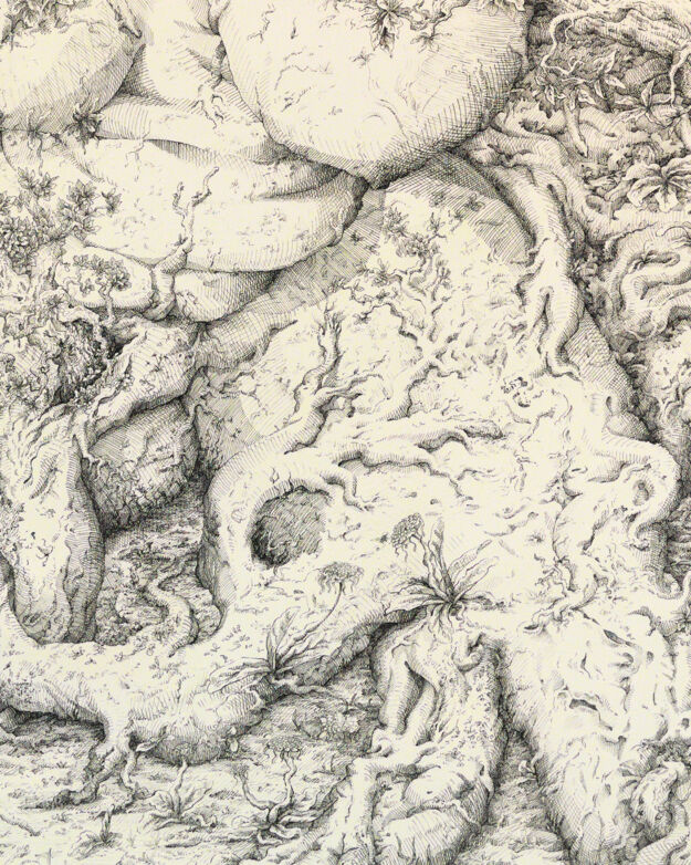 Shu Hua Xiong’s ethereal paintings move between figuration and abstraction. Drawing from Taoist, Buddhist philosophy and her own research into world religions and contemporary spiritual movements, her visual language traces a journey toward oneness—integrating fragments and dualities into a unified whole. Guided by patterns found in nature that echo our own biological structures and social context, the paintings mirror a quiet parallel between the human and the natural world.