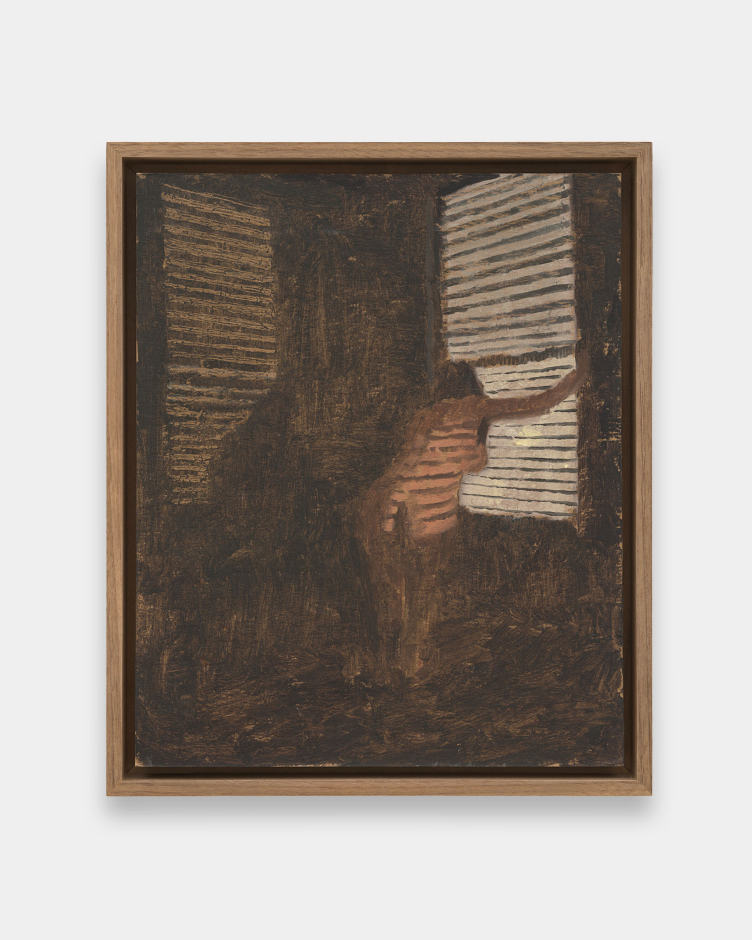 Practice is part of a series of intimate domestic portraits Borsos renders of his partner Lily Akerman, turning everyday moments into poetic musings. In each delicate, small-scale painting, Borsos quiets and slows the passage of time to capture Akerman in various twisting postures. Choreographed yet fluid, the still, decluttered compositions remove the reticent veil of the mundane to reveal the mystery, excitement, and love embedded within, and often occluded by the everyday.